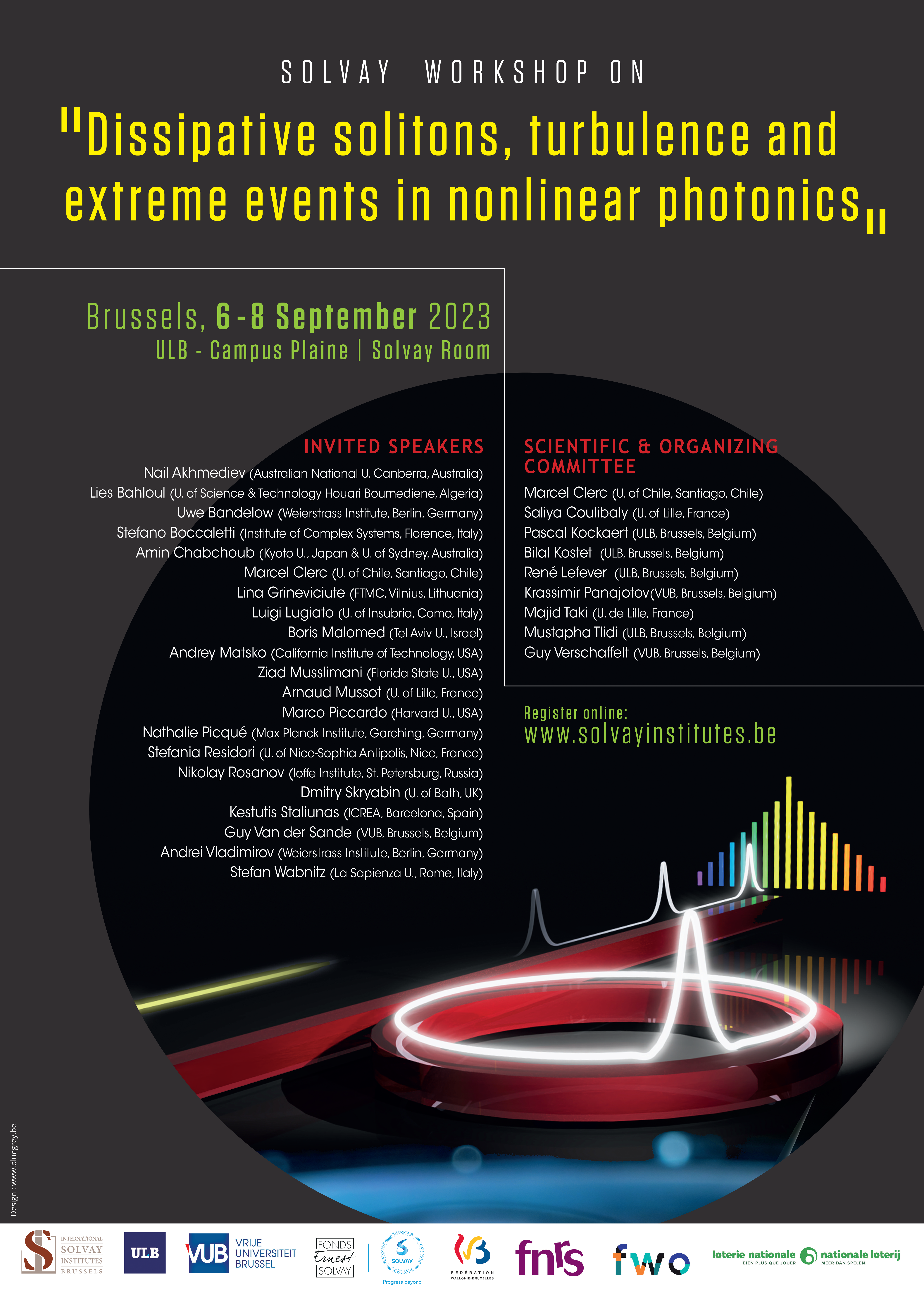 The study of the confinement of light in one or more dimensions leading to the formation of conservative and dissipative solitons has revolutionized nonlinear optics and photonics. New classes of ultrafast lasers have also been created, making a wide range of interdisciplinary applications possible. Key studies in the field of optical communications as well as many areas of ultrafast photonics, including laser design, frequency comb generation, and interdisciplinary studies related to the complexity of producing extreme events, turbulence, and spatiotemporal chaos, are now supported by soliton physics. This workshop will cover the most recent advances in the following active areas of study while describing the state of the art, recent developments, new perspectives, and cutting-edge methods: