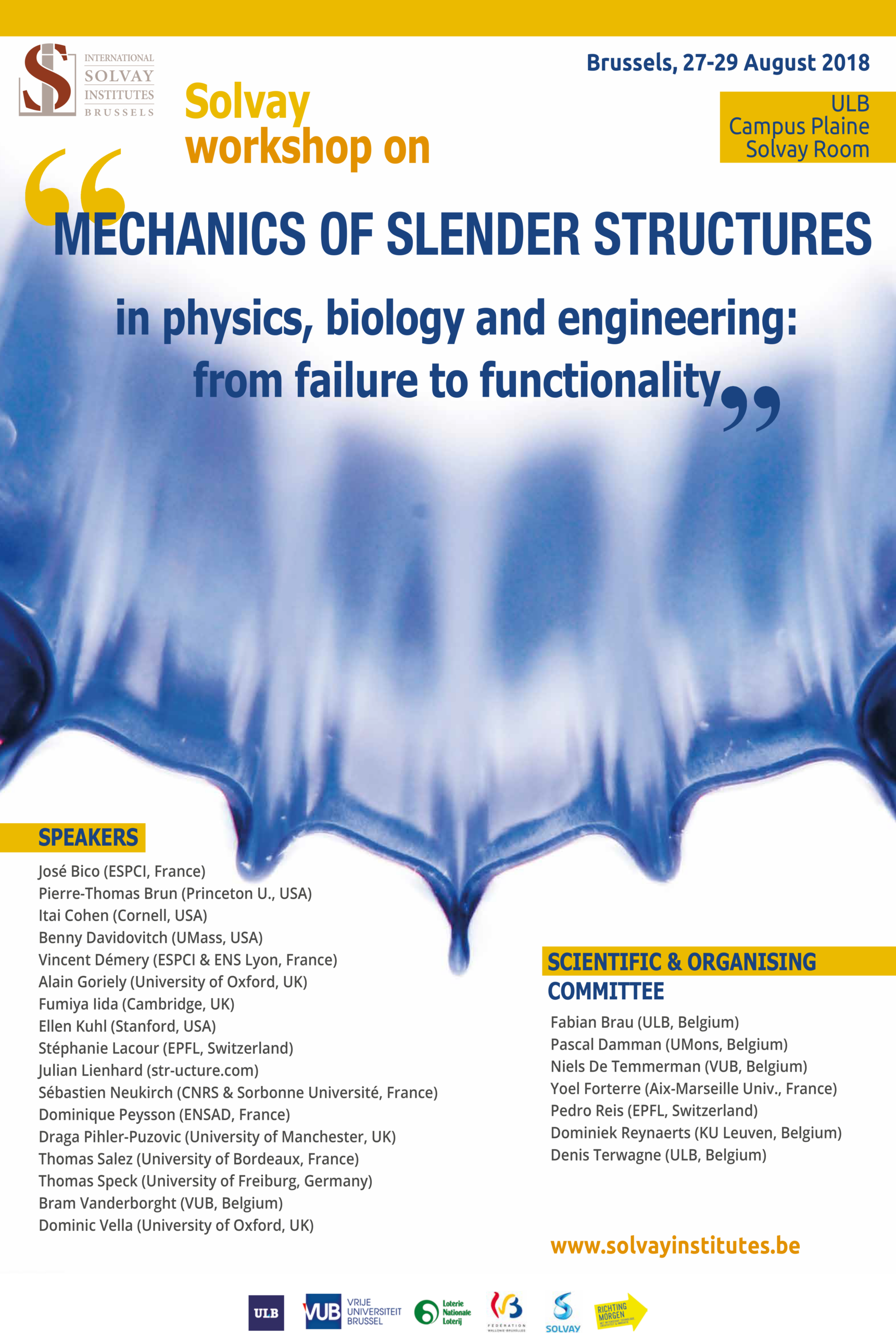 The main ambition of this meeting is to bring together internationally acclaimed experts as well as young researchers in mechanics, biomechanics, biolocomotion, material science and architecture to address the current scientific challenges in these various fields. The workshop will serve as a platform to stimulate discussions, to start long-term scientific collaborations and to promote progress at the porous boundaries between research domains, such as elastic instabilities of slender objects, foldable structures /origamis/kirigamis, elasto-capillarity/fluid-structure interaction, biomechanics, bio-inspired robotics /stretchable electronics, etc.